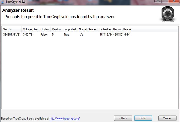 Jetzt habe ich die Platte mit TestCrypt analysiert und komme zu folgendem Ergebnis :