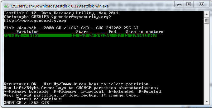 Nun zu TestDisc: Wie empfohlen habe ich die Version 6.12 installiert.