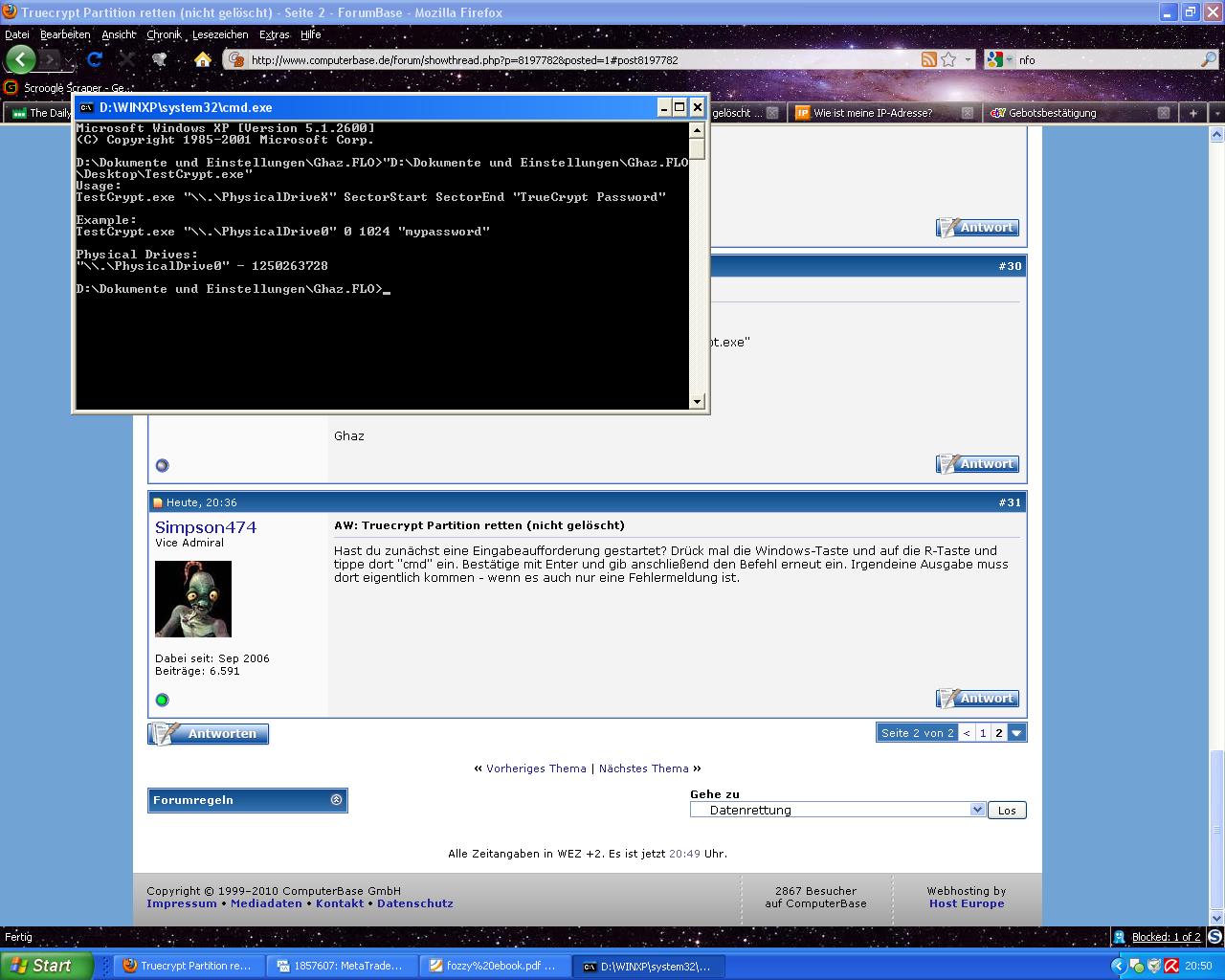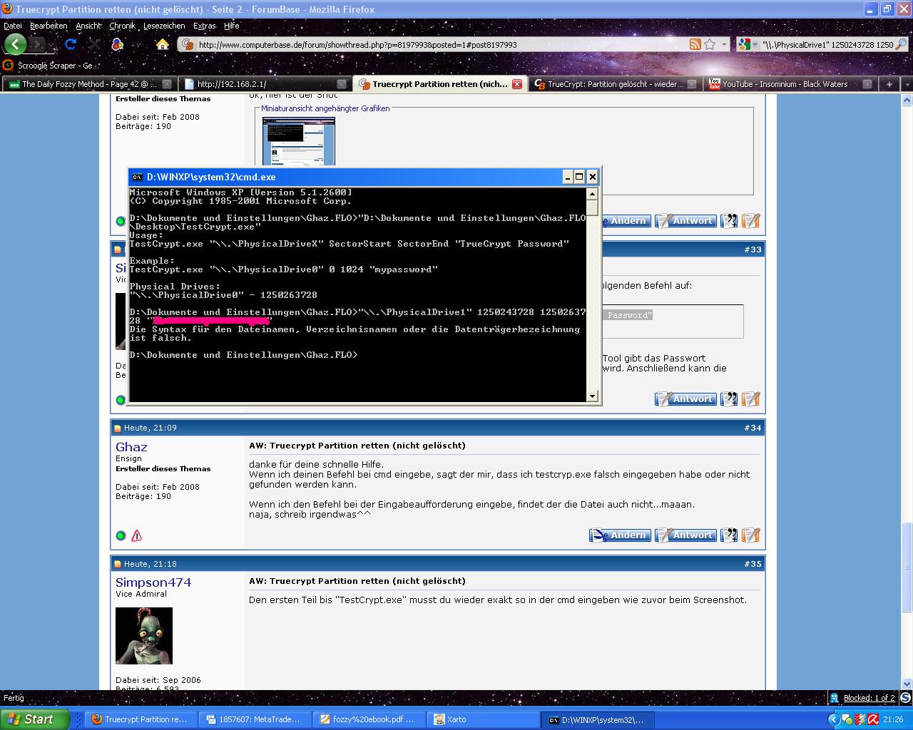 Auch wurde die TrueCrypt-Partition bereits mit der Windows-CD gelöscht.