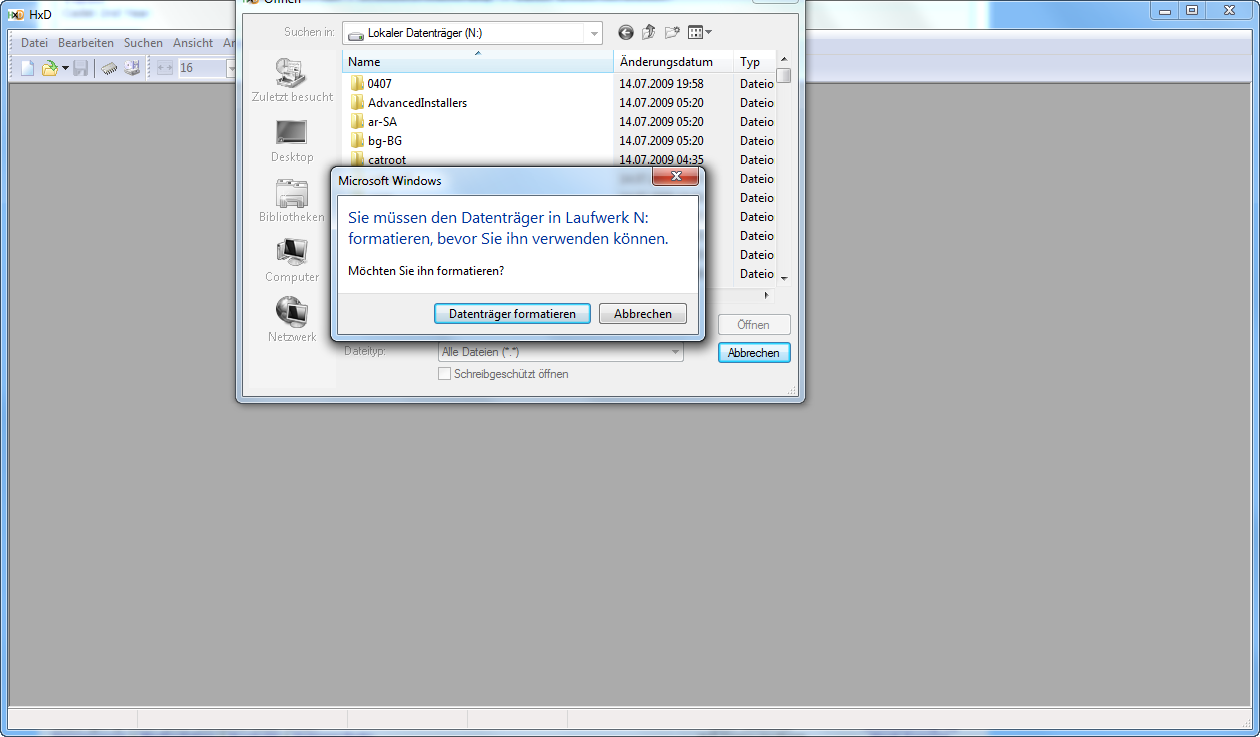 Hast du HxD auch als Administrator gestartet (Rechtsklick, Als Administrator ausführen)?