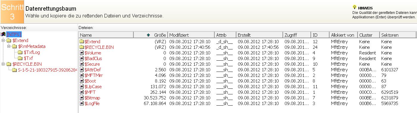 Nach 3,5 stündigem Scan lieferte GetDataBack for NTFS folgendes ernüchternes Ergebnis (siehe Screenshot).