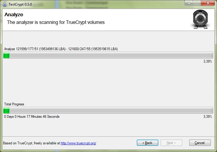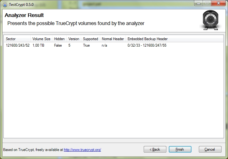 Ich habe mir den Volume Header einer mit Truecrypt verschlüsselten Festplatte gelöscht, in dem ich in der Datenträgerverwaltung in Windows 7 einen "format" des physikalischen Laufwerks begonnen und sofort wieder abgebrochen habe. Das Truecrypt Volume wurde mit der Version 7.0a erstellt. Bei der Festplatte handelt es sich um eine externe WD Elements 1 TB. Diese wurde einmal komplett mit Truecrypt verschlüsselt und es befinden sich "nur" Daten auf ihr.