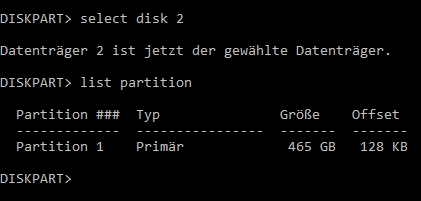 - Laufwerkstyp [256 bytes]: Partition,Primär