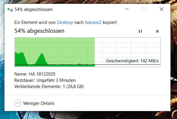 System: TrueNAS 12 U1 (fresh install) R7 2700/AsRock Rack/64gb Ram/LSI SAS9220-8i (Pool 1 5x8TB), 2x 120 GB SSD (System), 2x1TB NVMe (SSD-Pool), External Drives for Backup, 4TB intern, Asus XG-C100C. Das Nas hat 4 Nics (2x 1Gbe 1x für IPMI 1x 10GbE C100C, an der Workstation 1x GbE 1x 10Gbe C100C).