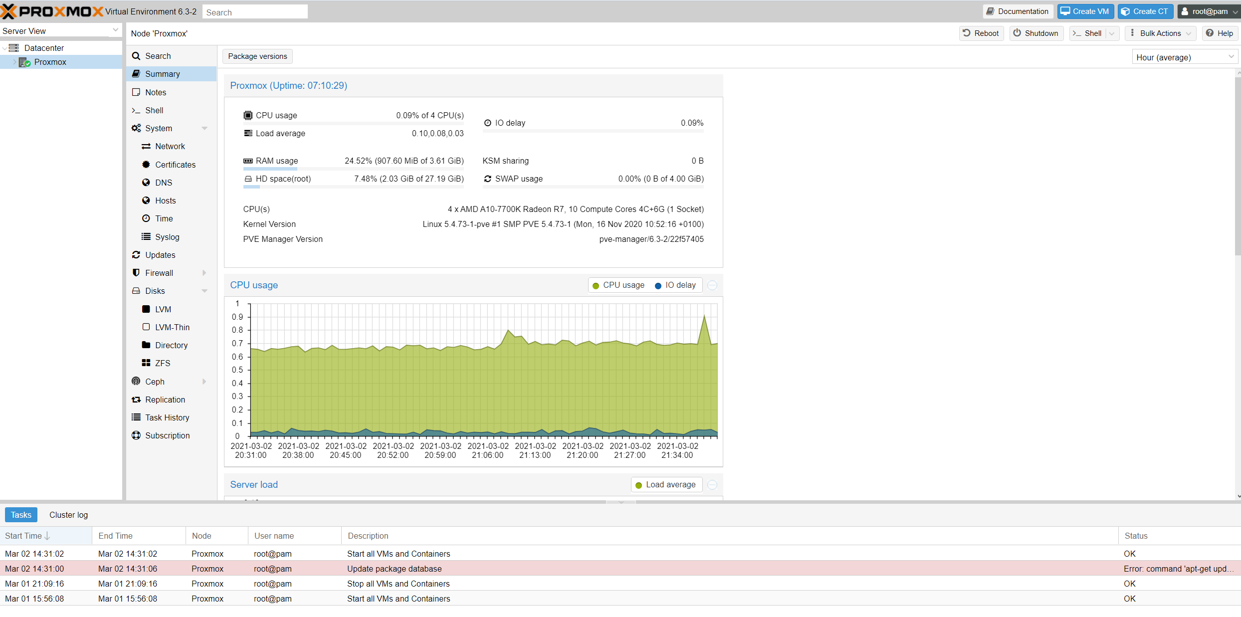 - Insgesamt 4 Festplatten: System 80 GB, dann jeweils 2 2 TB-Platten und eine 4 TB Platte. Allesamt XFS-formatiert und voll bis auf circa 1,5 TB.