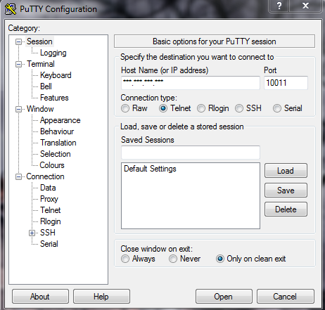 Telnet hast du ausgewählt ?