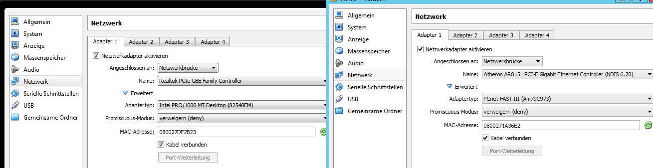 Jede der Möglichkeiten klappt auf dem Client der VM problemlos.