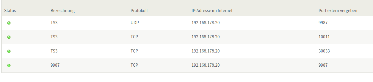 Dann hab ich die Ports freigegeben