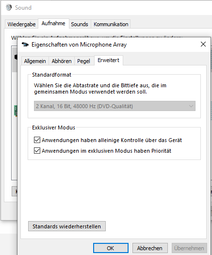 Mikro und Soundboxen im Windows funktionieren, da Regler anspringt.