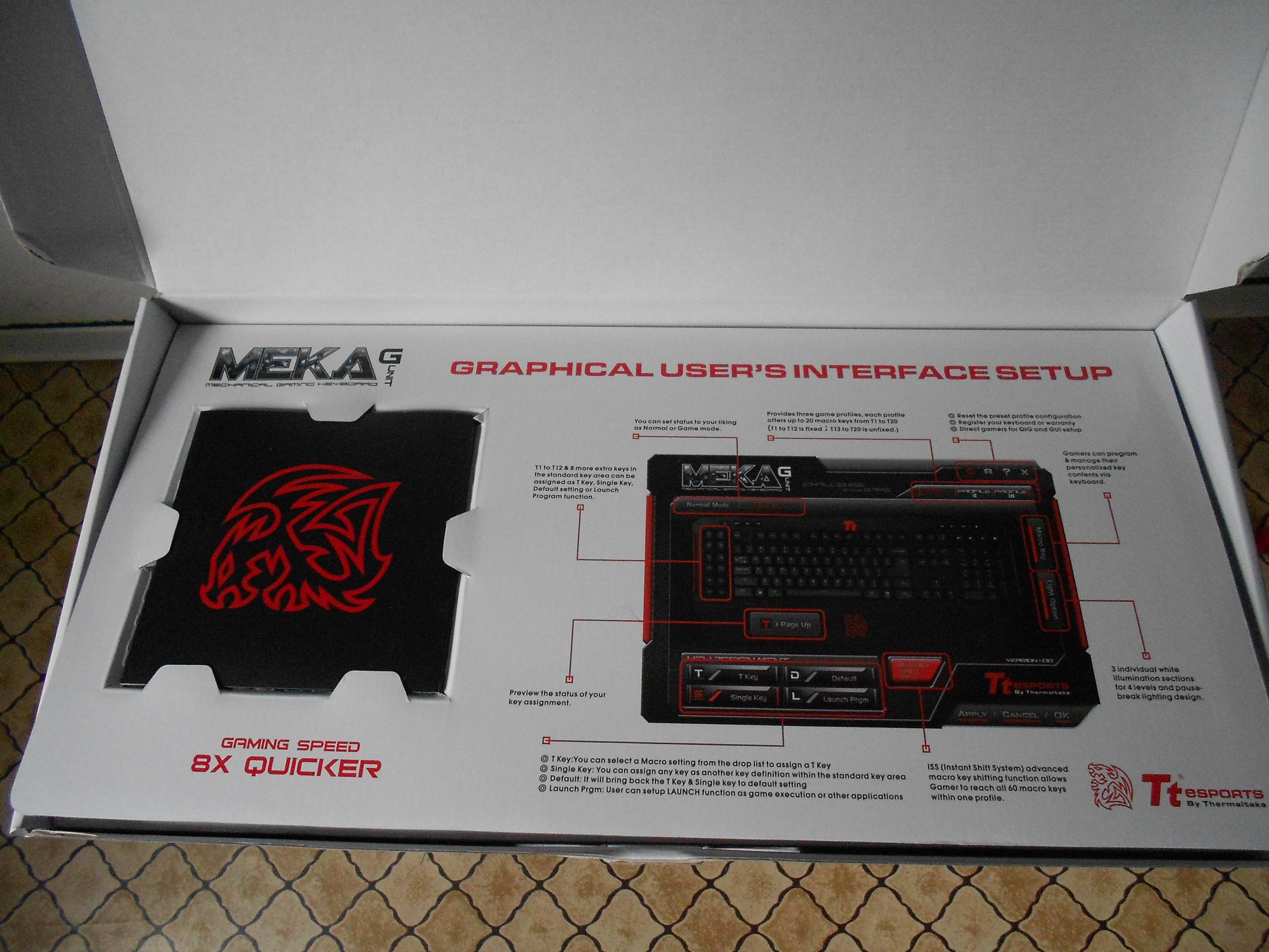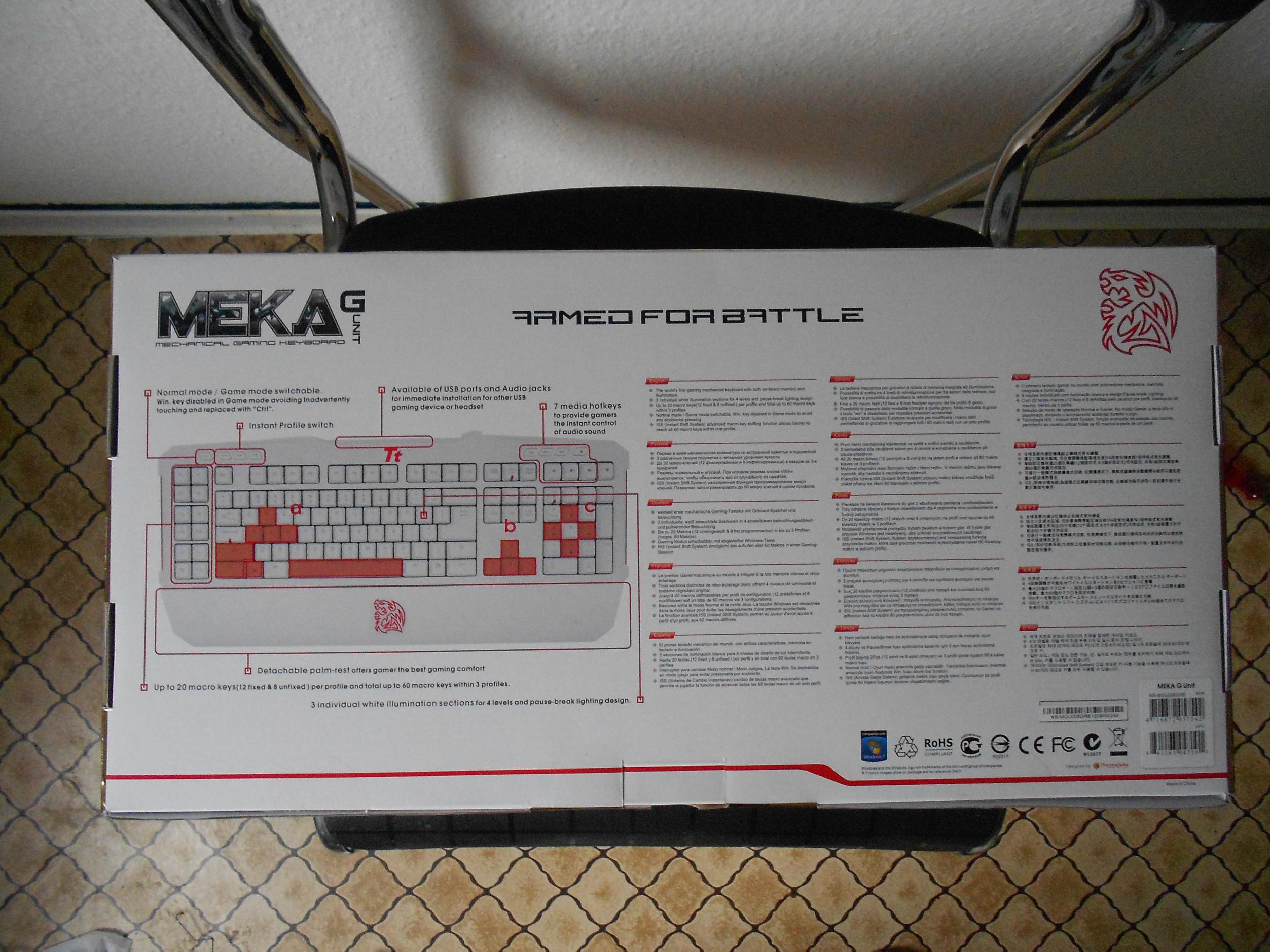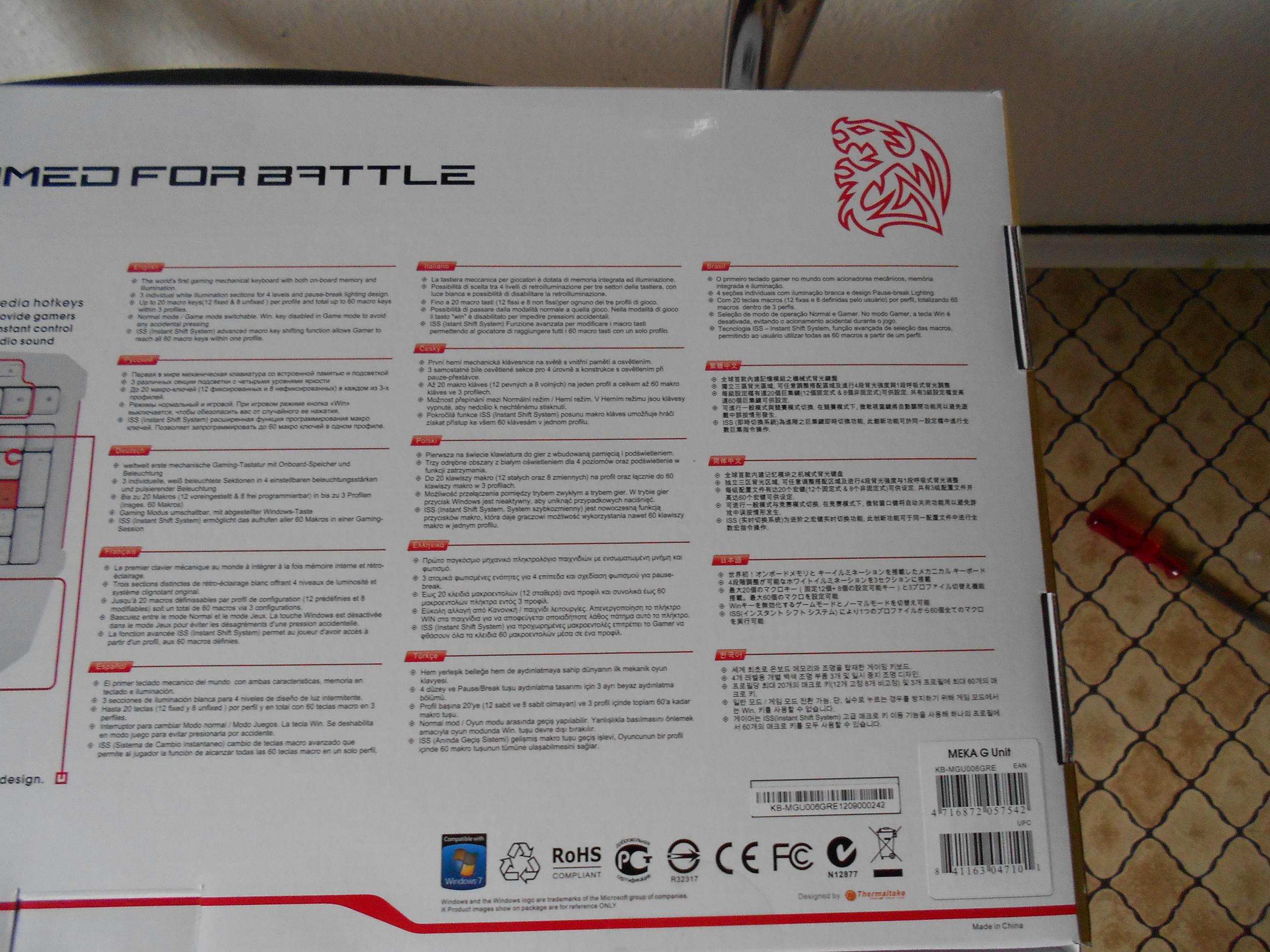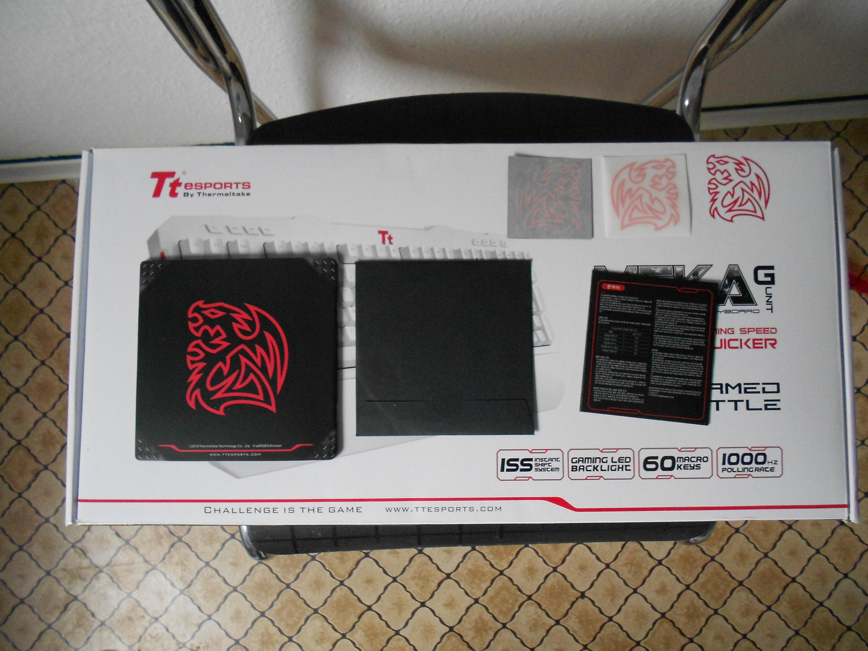 Als ich den Karton der Tastatur vor mir hatte, wurde ich erstmals von dem vielen Weiß erschlagen. Das schon ein Flash für meine Augen, da mein sonstiges Equipment am PC eigentlich nur Schwarz ist (+ deren Verpackung). Mir gefällt an dem Karton aber die große, gut lesbare Schrift echt gut. Dazu setzen die Farben Rot und Weiß die Verpackung und die Tastatur an sich in ein für mich sehr gutes Licht. Da diese Tastatur von Thermaltake und besser gesagt dem Esports Team ist,würde ich schon sagen dass diese Leute bei der Entwicklung der Tastatur ihre Arbeit mit der Qualität der Tasten und dem Aussehen vom Gesamt-Konzept mich zu Frieden stellt. Die Tastatur wirkt auf mich nicht so protzig wie ich es von Razer BlackWidow erlebt habe.