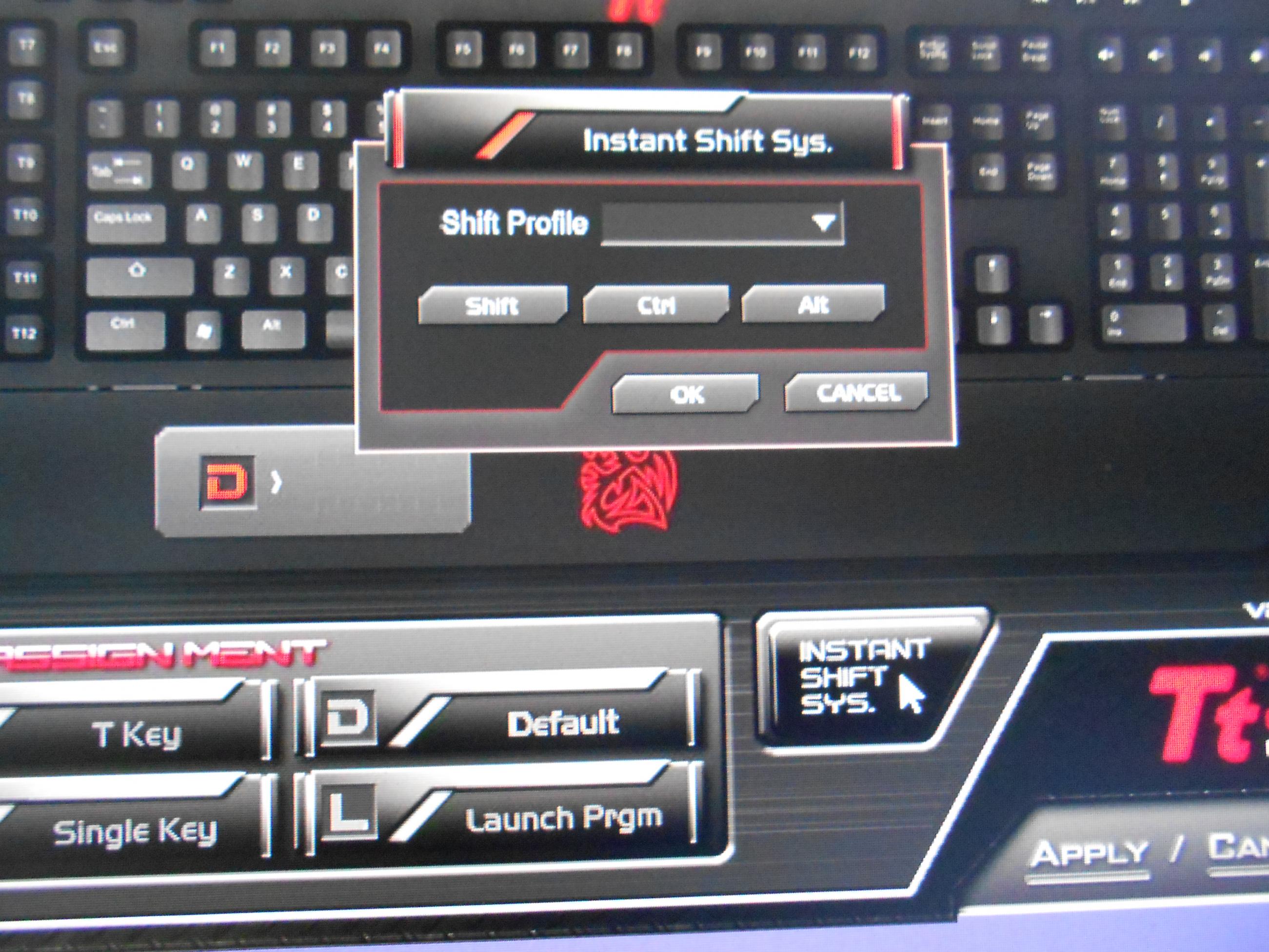 Dies kann man mit ALLEN Tasten außer den Media- und Profil-Tasten einstellen. Wenn man eine Funktion gewählt hat geht man nun zum Bestätigen des Befehls auf "OK" in dem kleinen Fenster was dann kommt und zum Übernehmen des Befehls dann auf Apply (englisch für Übernehmen). Nun kann man das gewählt in Ruhe austesten und bei nicht gefallen jederzeit über anwählen der Taste, dann auf Default und wieder auf Apply und es ist wie vorher...