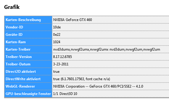 ACHTUNG: Diese beiden Einträge können Probleme verursachen, zumindest wird die verwendete Schrift in Firefox unscharf, was man aber mit dem Plugin "Anti-Aliasing Tuner" sehr leicht uns schnell beheben kann; In dem Plugin empfehlen sich die Einstellungen "Clear Type & GDI Classic"! Testen kann man das veränderte und beschleunigte Rendering dann auf dieser Webseite... HINWEIS: Um diese Modifikation wieder zu entfernen, den ersten Wert auf "false" und den zweiten auf "0" setzen, sowie das Plugin "Anti-Aliasing Tuner" deaktivieren!