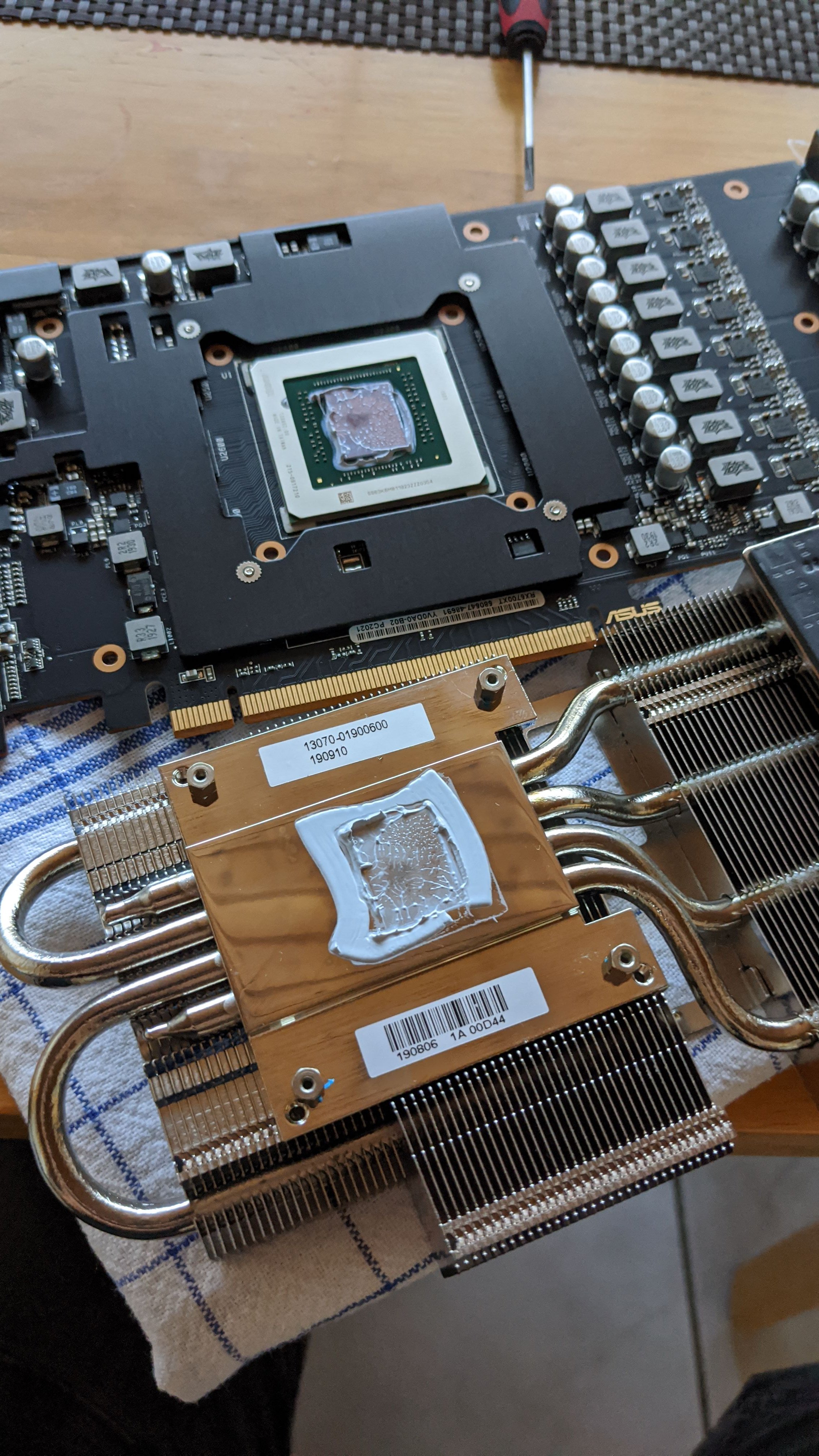 So garantie hin oder her ... Also . Demontiert den ganzen mega Klecks vom Hersteller Weg gemacht /gereinigt , mit 2 dünnen Schichten Klarlack bearbeitet und geschützt . Nun Flüssigmetall drauf auf GPU Chip und Gegenseite am kühler etwas ... . Wieder zusammen gesetzt und 3 benchtests gemacht . 67 höchstens 70