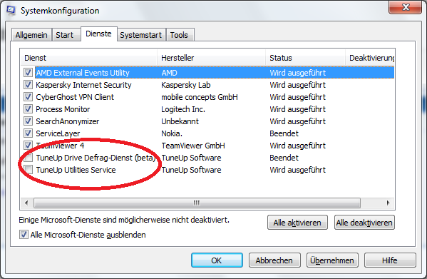 Jetzt immer wenn ich boote kommt TuneUP Registry Defrag (also kurz nach dem da stande Windows wird gestartet). Das will ich gar nicht!