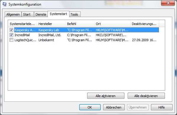 Ich habe nur einmal TuneUP Registry Defrag ausgeführt.