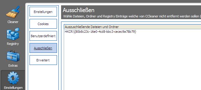 So habe mal Screenshots gemacht, lediglich eine Sache muss man ausschliessen beim RegCleaner vom CCleaner, weil dieser Fehlerhafte Eintrag immer wieder auftaucht.