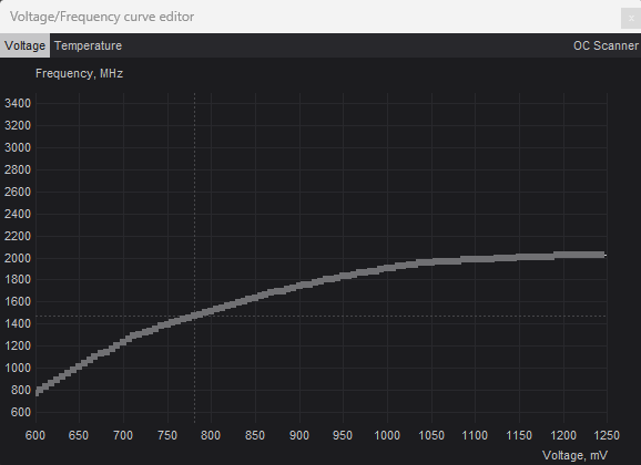 Du hast die MinVoltage auf 600 mV gesetzt, das ist der Grund, das wollte ich aber für das Testen nicht, sondern das meine Kurve direkt bei dem Wert startet den ich für 1500 MHz nutze um auszuschließen das irgendeine andere MHz/mV Kombination darunter instabil sein könnte, also ich will nur eine Taktfrequenz und eine Spannung geändert haben, also zumindest während der Zeit zum Überprüfen auf Stabilität.^^
