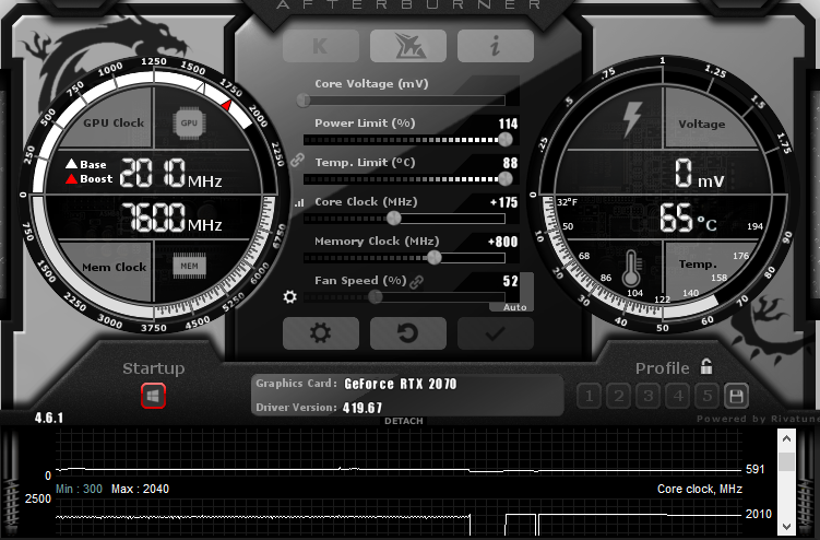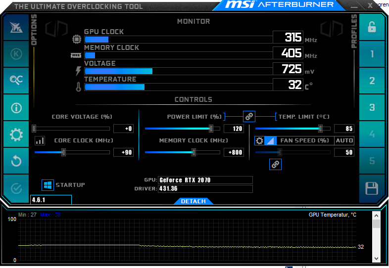 Und ich habe nicht uv, settings sind bei mir: Power Limit + 120%, Core Clock + 130 Mhz und Memory Clock + 900 Mhz.