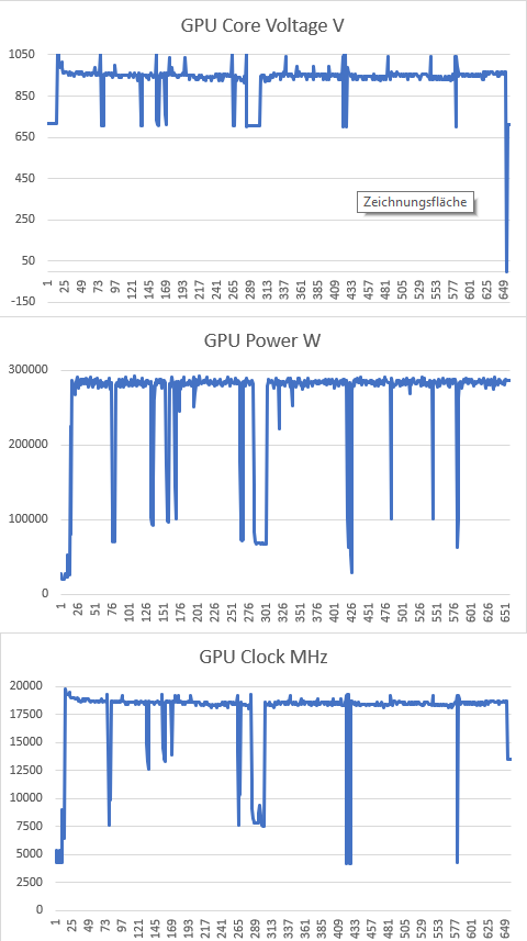 und einmal war bei meiner gespeicherten Einstellung auf einmal +80 bei GPU-Clock, was ich so nie verändert hatte. Habe dann die gespeicherte Einstellung rausgenommen und wieder aktiviert, dann hats gepasst.