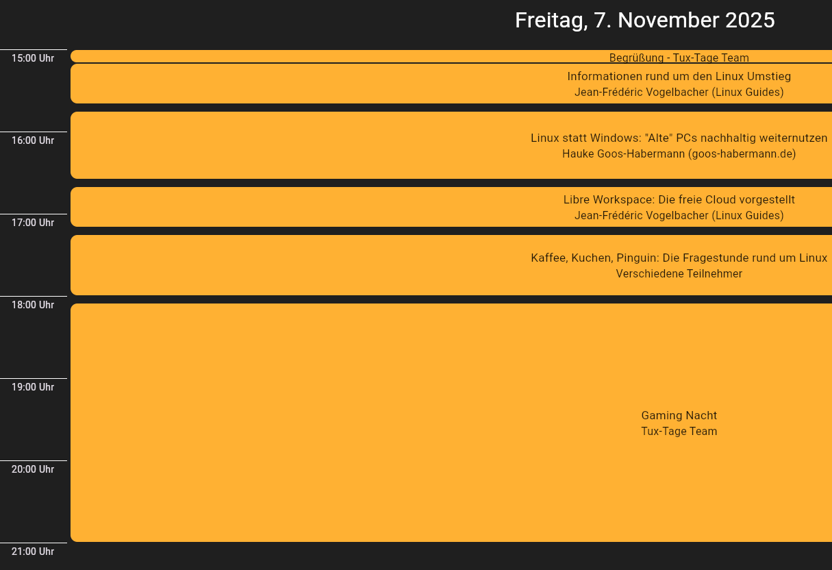 Programm: https://ems.tux-tage.de/events/4/timetable/ oder als Anhang (Änderungen vorbehalten)