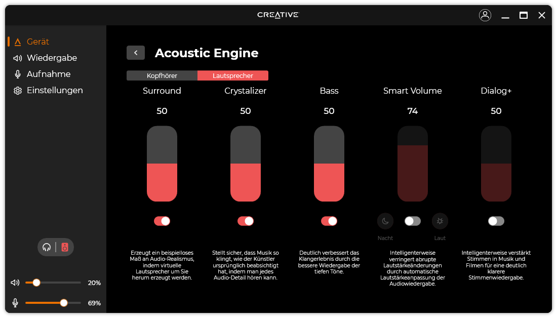 Hallo, ich habe mein TV über HDMI ARC an die neue Soundblaster G8 Soundkarte angeschlossen und über LineOut die Edifier S100MKII Lautsprecher.