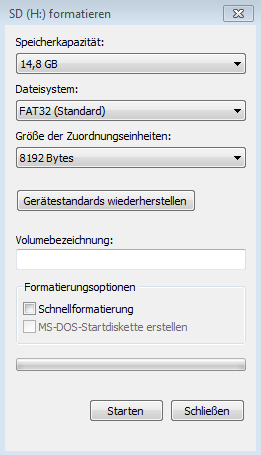 Das Bild zeigt, wie ich die Speicherkarte am PC formatiert habe.