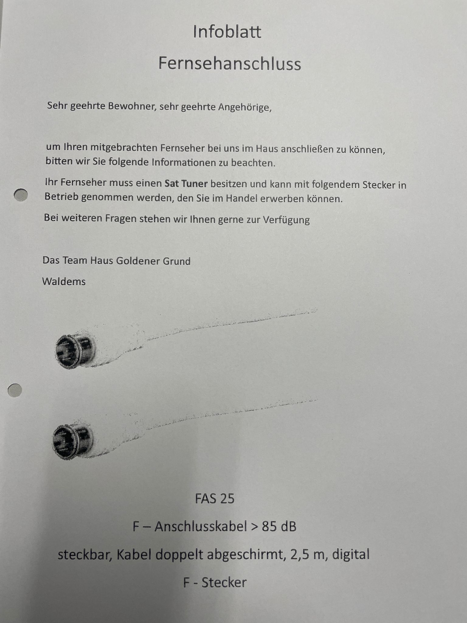 Der ansässige Hausmeister weiß leider auch nur: Einstöpseln und Suchlauf. Das geht dann schon - ist also leider keine große Hilfe.