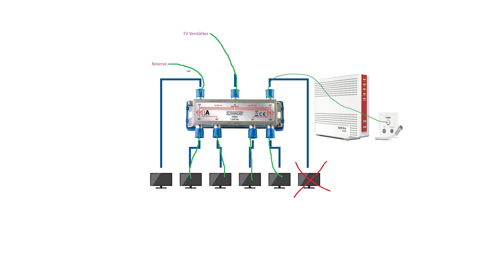 Nun meine Frage kann ich einfach ein 6 Wege TV-verteiler nehmen und es so machen wie auf meinem Bild?