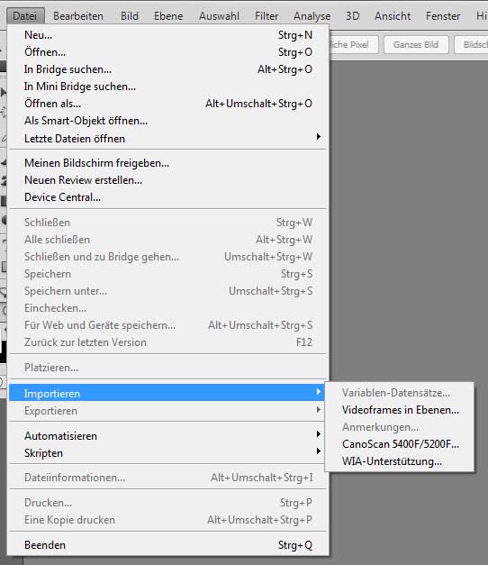 Wenn Euer Twain-Scanner unter Photoshop CS5 unter den Menü "Importieren" trotz installiertem Treiber nicht mehr angezeigt wird habe ich hier die Lösung für Euch.
