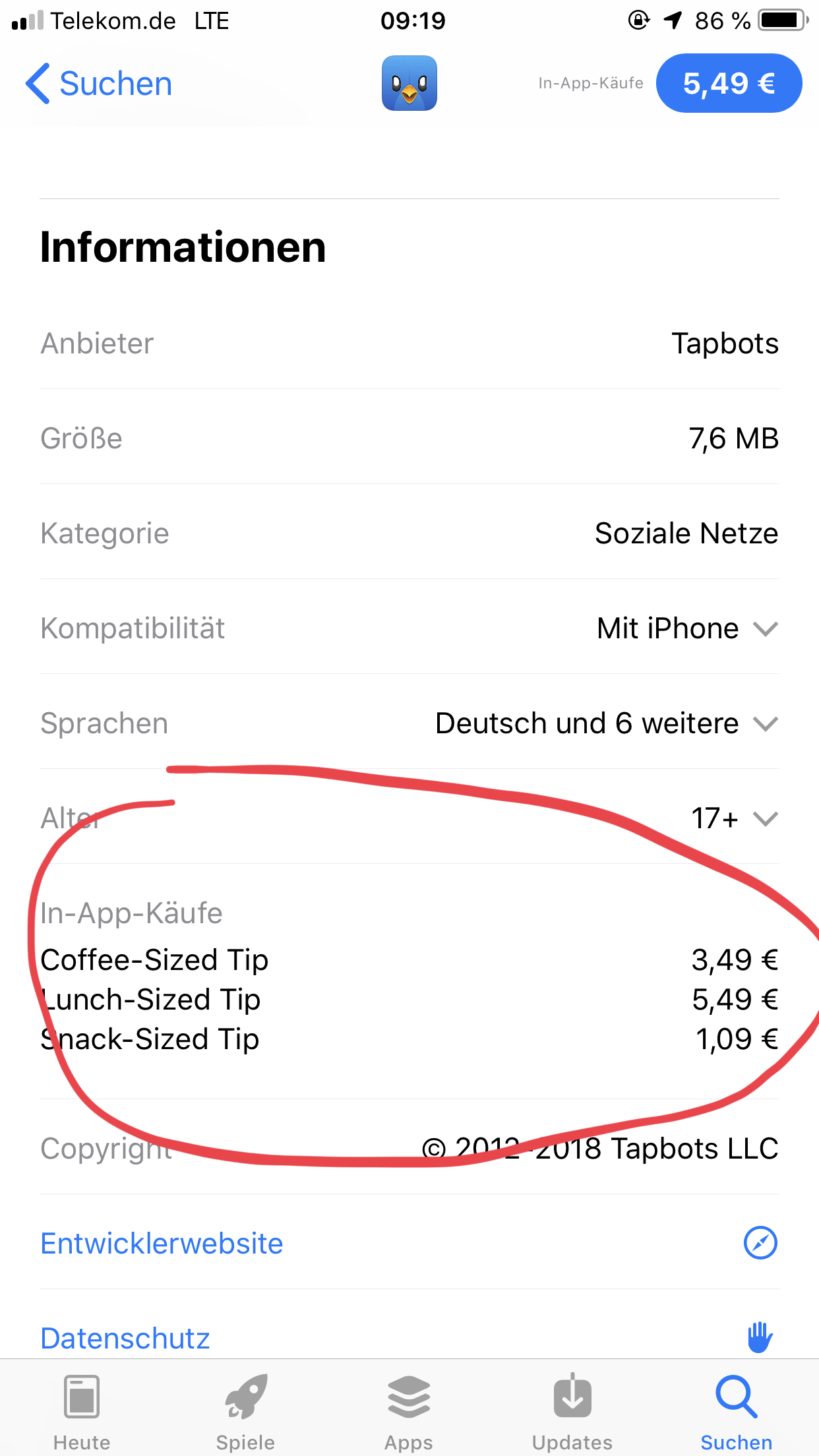 ich hatte mir die aktuellste Version von Tweetbot im AppStore gekauft. Nach kurzer Nutzung kam jedoch die Aufforderung, ich solle doch nochmals Geld spenden. Finde ich bei einer gekauften App relativ unverschämt, habe die App zurückgegeben. Nun meine Frage: kommt dieser Hinweis einmalig oder immer mal wieder? Hat damit jemand Erfahrung?