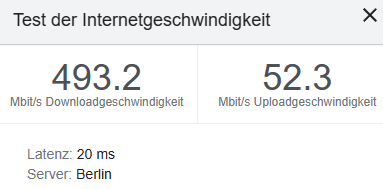 Ja ich habe da ein kleines Problem, hab schon schnelles Internet bei Vodafone 509,75 Mb/s - 52,00 Mb/s. Es läuft über ne Fritz box