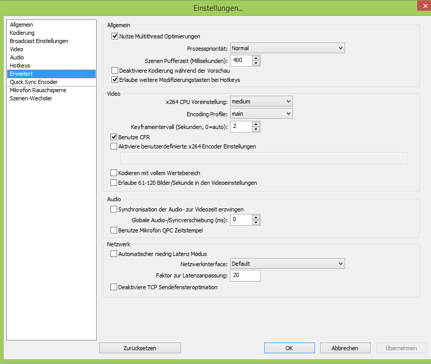 "Vergiss aber nicht je höher der Preset, also je geringer der CPU Load, desto mehr Upload Bitrate wird benötigt um die Qualität zu halten - das ist dann die Kehrseite der Medaille."