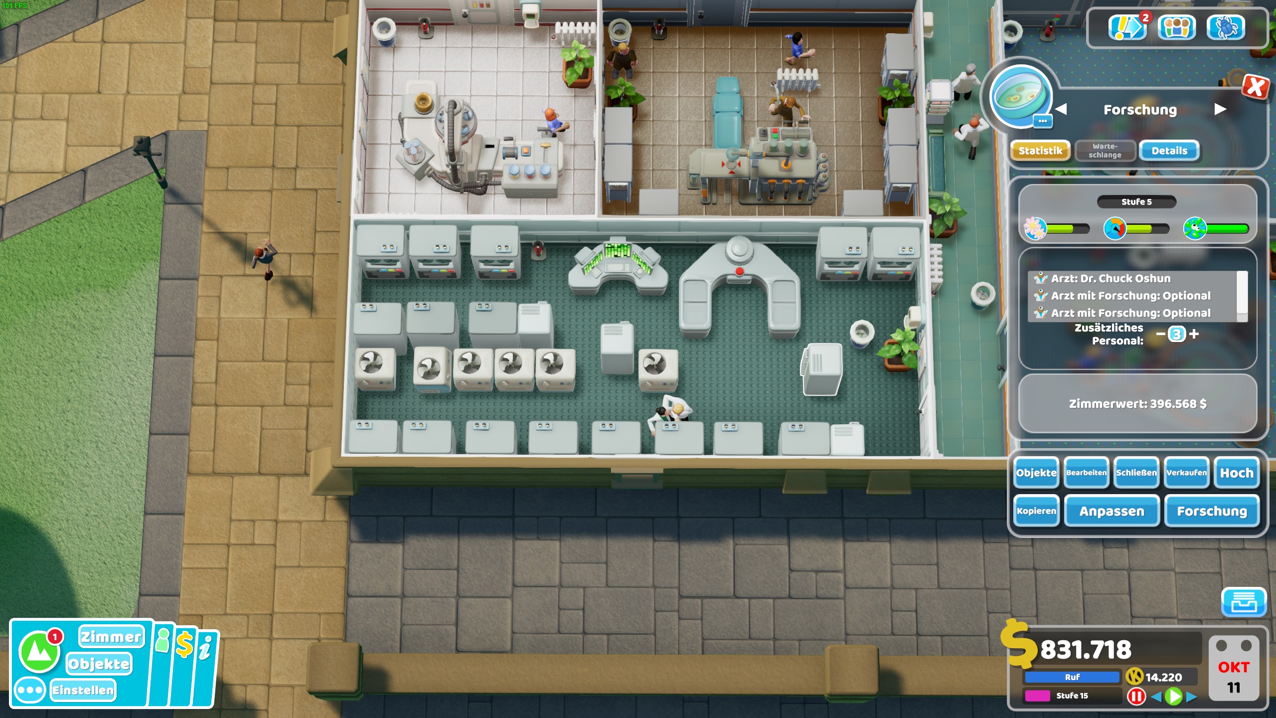 Es ist deutlich effizienter, allein schon aus kostengünden, einen etwass größeren Forschungsraum zu haben, da 2 Räume nicht an einer Technologie forschen können. Ich stelle da im Midgame einige Server,Supercomputer rein und ein paar Klimanlagen und mit 4 Forschern. Dann hast du alle 5-10min (x1 Geschwindikeit, alle min. Stufe 4 Forschung) eine Forschung komplett fertig. [IMG]https://pics.computerbase.de/forum/attachments/720/720228-a21281b292d23fdf85bdd7e18e2146d6.jpg[/IMG]