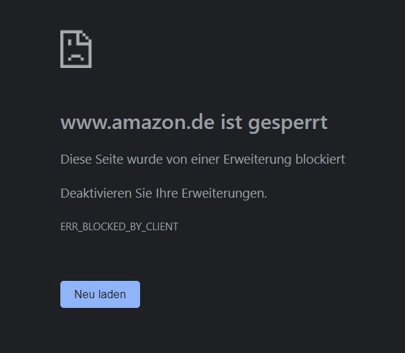 Seit einiger Zeit zickt uBlock Origin im Chrome Browser, ganz besonders mit Amazon. Obwohl ich www.amazon.de NICHT blocke kommt immer ganz kurz diese Einblendung: