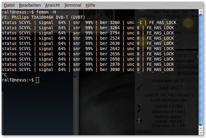 Dann bin ich zu Linux gewechselt und habe anhand von diesem "Tutorial" mal den Treiber installiert (obwohl Ubuntu 11.10 das ja schon automatisch macht). DVB-T-Stick rein und mit dmesg geschaut was raus kommt: keine Probleme, Treiber erkannt und geladen und Gerät in den "warmen" Zustand versetzt.