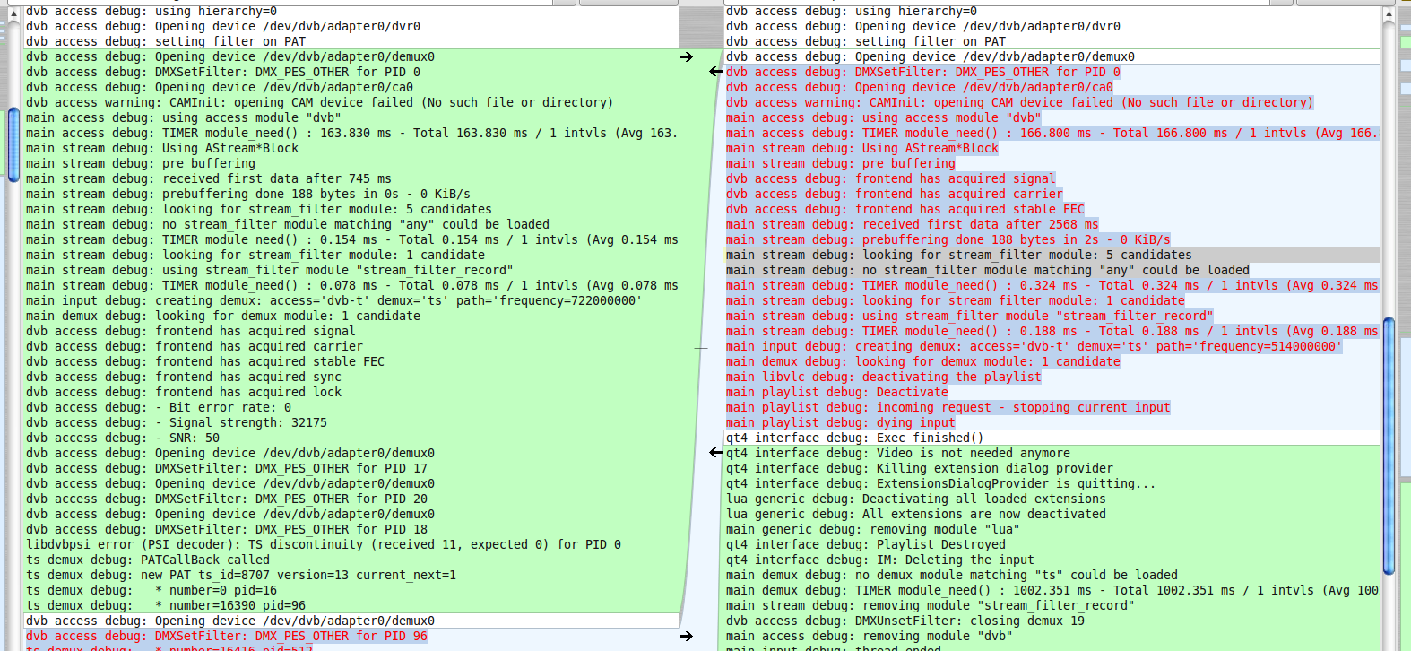 Wenn ich jetzt das Programm scan (mit entsprechenden Parametern) laufen lasse gibt es immer einen Fehler. Er sagt, dass das "Tunig failed". Wenn ich den Stick ganz weglasse geht es überhaupt nicht (klar - also irgendwas erkennt er schon). Naja ist ja nur das Scanprogramm. Also habe ich es mit dem VLC versucht: mit dem VLC lässt sich auch nichts wiedergeben. Es gibt zwar keinen direkten Fehler aber es passiert nichts!