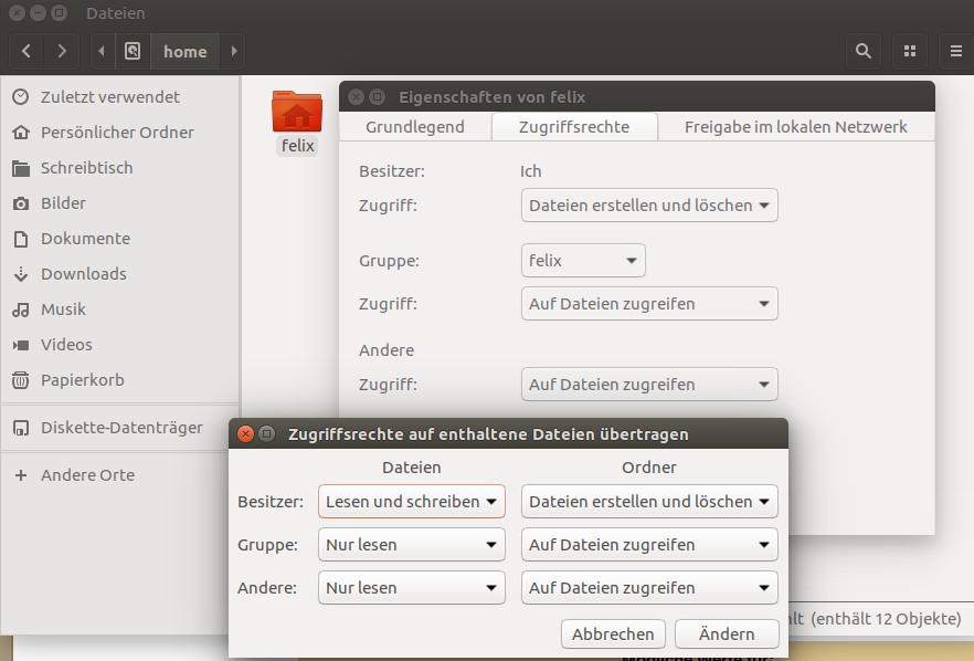 Also habe ich direkt mal in die Zugriffsrechte geschaut und kann nicht erkennen wieso die Gastsitzung schreibend (!) auf die Dateien in meinem Homeverzeichnis zugreifen kann.