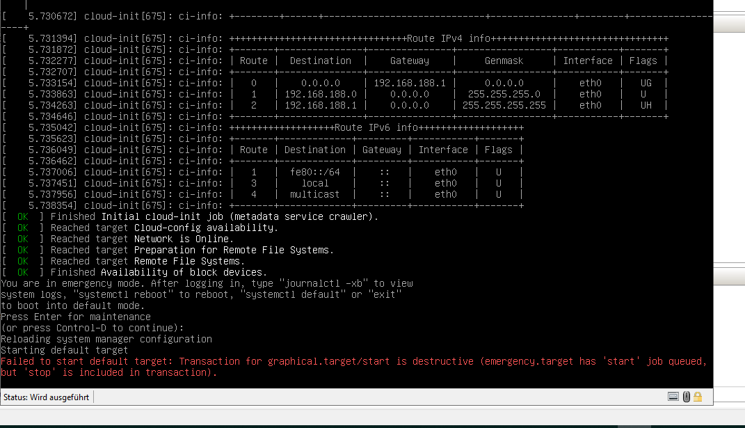 Wenn die VM per Hyper-V (mit Azure Integrationsdienst für Gastbetriebssysteme) heruntergefahren oder auch einfach gekillswitcht wird, startet Ubuntu in einen emergency mode. Und zwar immer wieder. Nach 3-5 maligem ausschalten und einschalten startet Ubuntu dann wieder ganz normal, als wäre nix gewesen.
