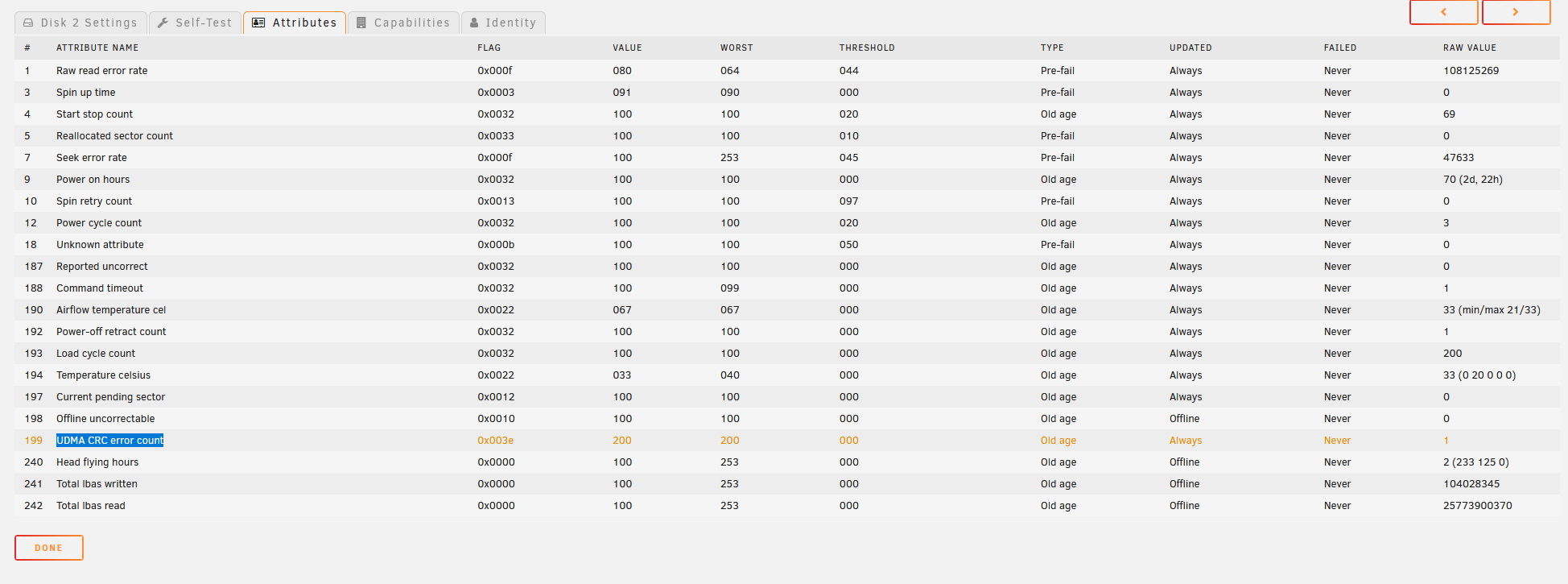 Jedenfalls hat es mich jetzt ziemlich verunsichert, dass Unraid für die HDD einen error anzeigt, nämlich im Titel besagten: