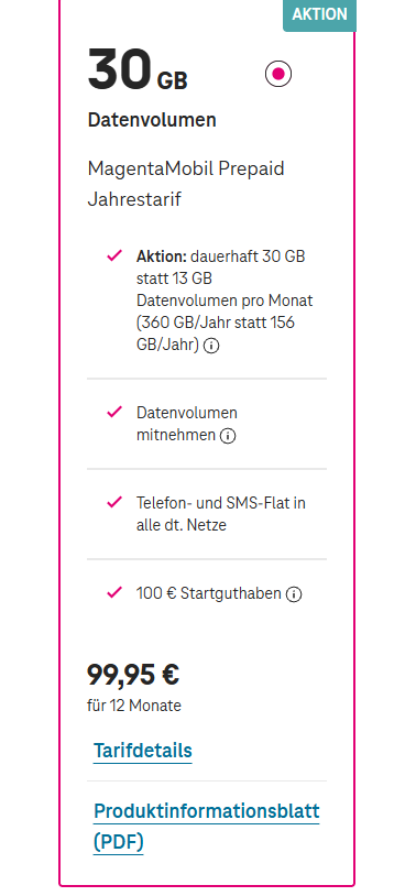 Der Telekomtarif wurde diesen Black Friday erst aufgewertet, nämlich auf eben diese 30GB.