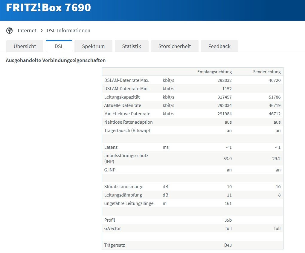 Die Fritzboxen zeigen die FECs ja im Standard nicht mehr an, aber die durch G.INP korrigierten (bzw. nicht korrigierten) DTUs. Wenn man da regelmäßig viele hat, dann wird der Durchsatz geringer (G.INP korrigiert durch neu senden der DTU). Das kann man an der „minimalen effektiven Datenrate“ erkennen. Ist die erkennbar niedriger als die aktuelle Datenrate, deutet das auf eine relevantes Fehlerereignis hin. Aber es sagt nichts über die Häufigkeit aus.