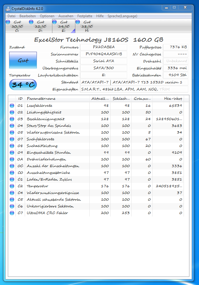 ich beabachte ob und zu mal die S.M.A.R.T Werte meine Platte die schon ein paar defekte Sektoren hatte. Vorhin vor 2 Stunden hatte sie einen Lesefehler.