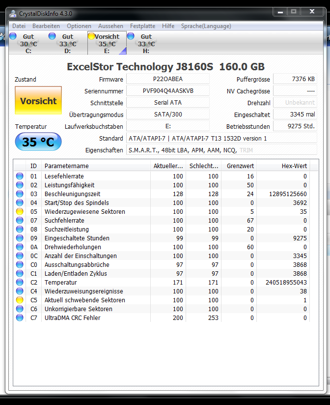 So, jetzt isses soweit, ein weiterer wiederzugewiesener Sektor und ein schwebender Sektor wurde beim erstellen einer Back-Up Image Datei gefunden.