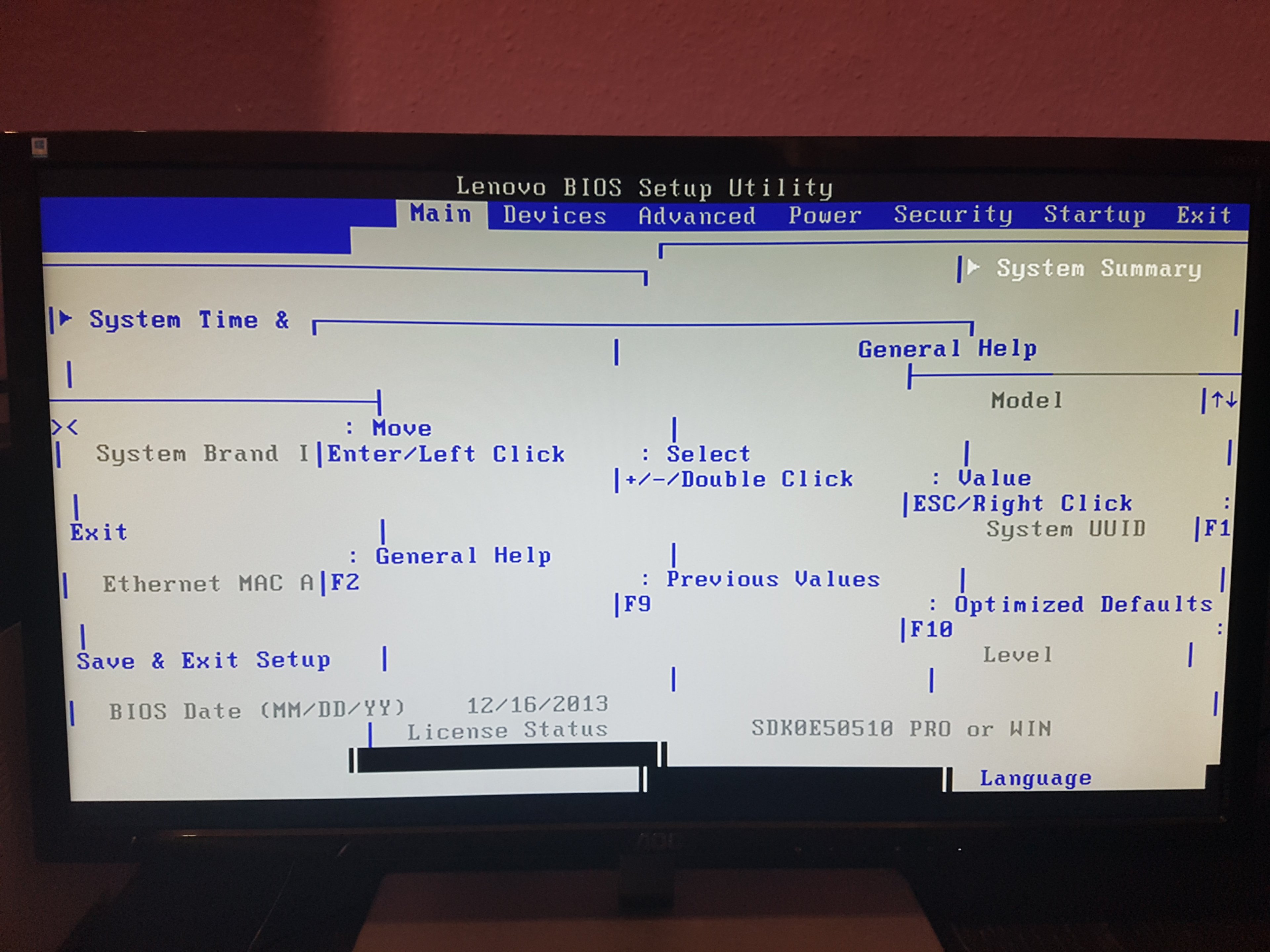 Ausserdem ist das Bios Menü komplett durcheinander. (Siehe Bild).