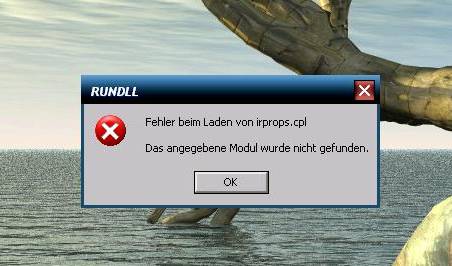 irprops.cpl ist Bestandteil vom Sp1, wenn Du kein Bluethooth (richtig gschrieben ???) hast ist der Fehler nicht so wichtig. Die enstsprechende Autostart-Eintrag kannste einfach in der Registry löschen. Sollte in etwa so lauten: rundll32., Bluethooth ....