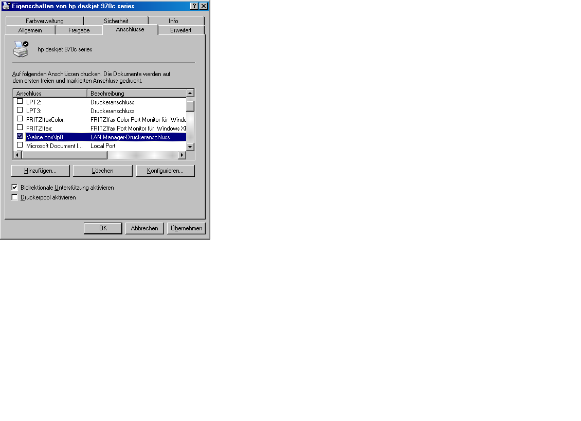 Ich kann den Drucker per USB und ISDN mit dem Router verbinden.