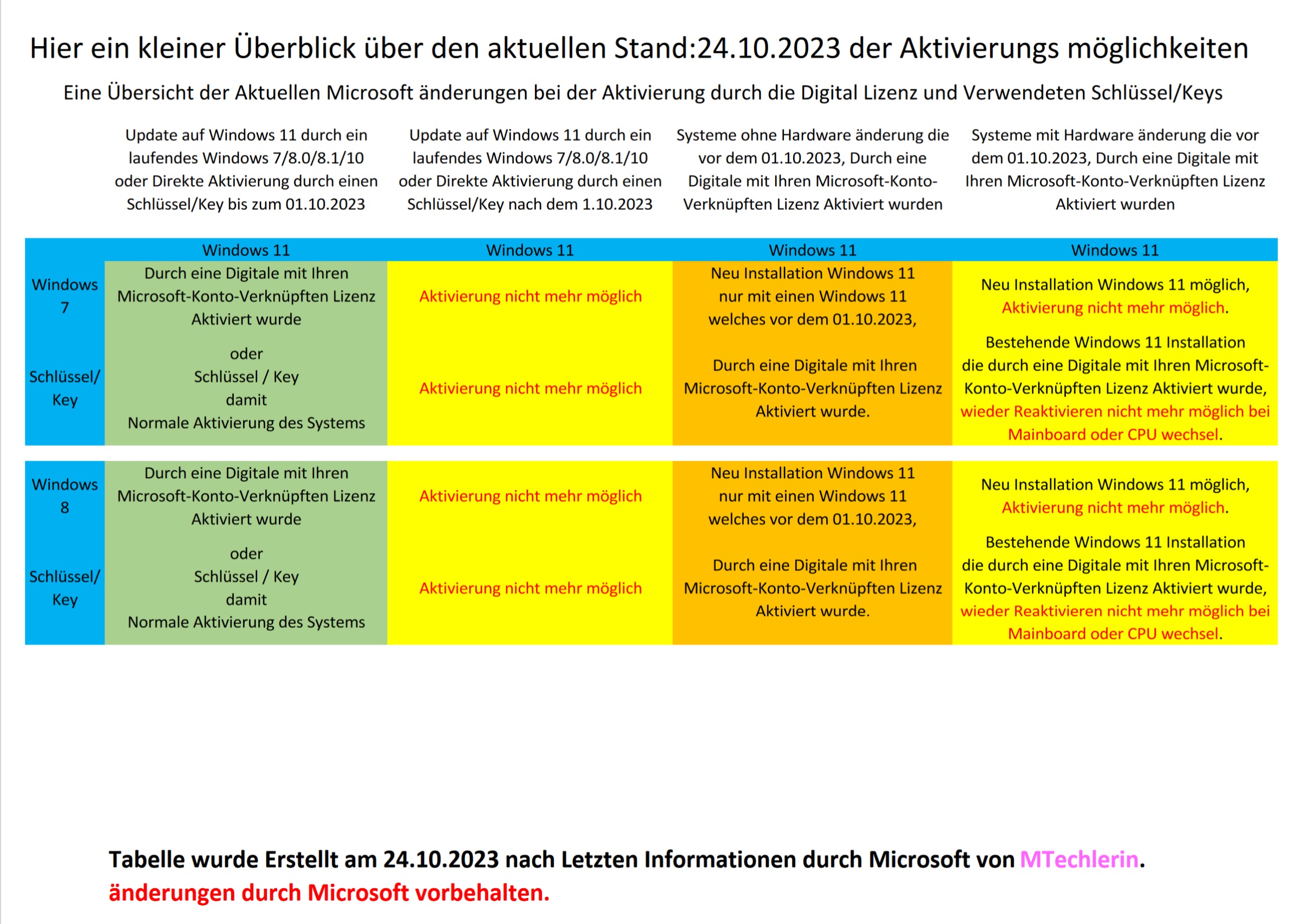 Hier ein kleiner Überblick über den aktuellen Stand:24.10.2023 der Aktivierungs möglichkeiten
