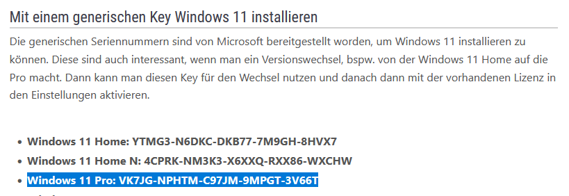 ich habe mir insgesamt 4 Win11 Pro key gekauft, bei einem nörgelt er rum dass er schon aktiv ist (was wahrscheinlich der ander Lapi ist) die anderen nimmt er erstmal kommt aber immer zu dem oben genannten Fehler. Wie komme ich auf dem Gerät mit Home Lizens im UEFI zu einem aktivierten Win11 Pro? Ohne jetzt ne Pro im MS-Store für 260€ kaufen zu müssen?