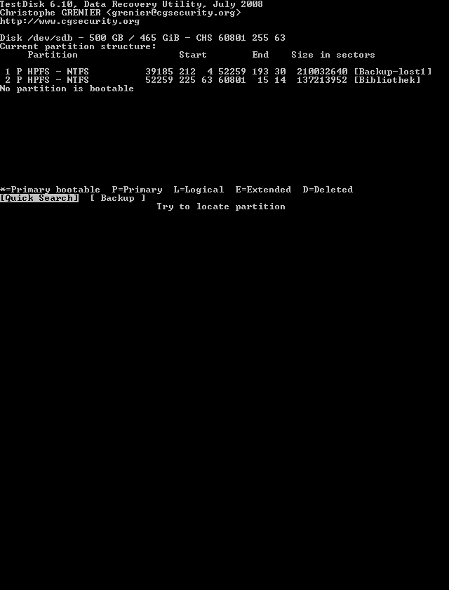 Daraufhin erschien auch wieder (zusammen) meine Partition "Biblilothek" die ursprünglich immer schon da war.