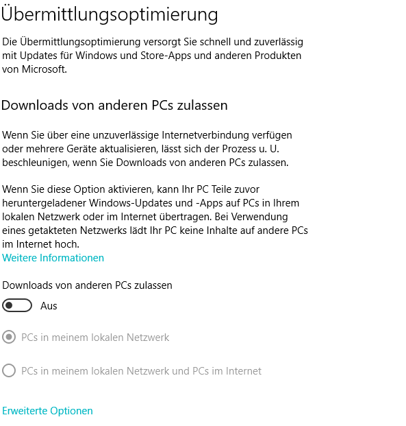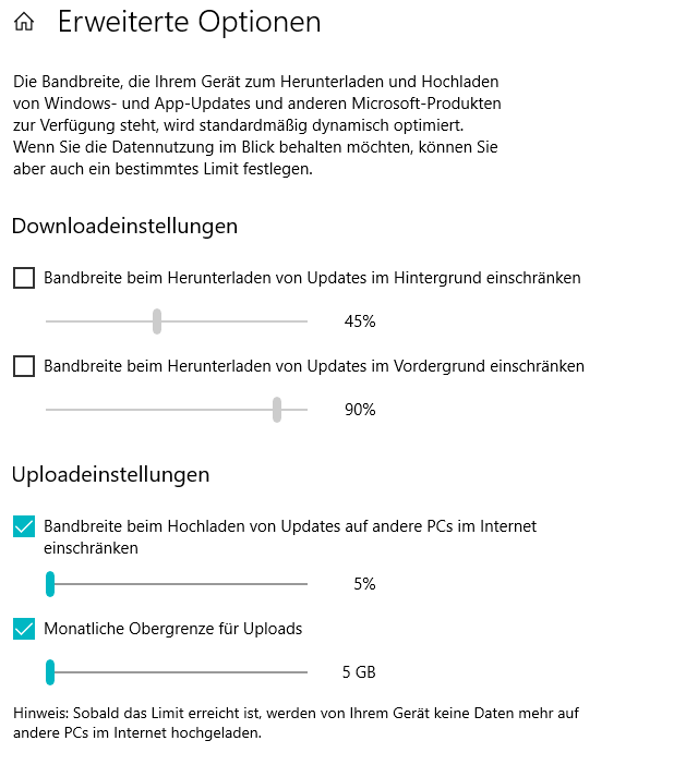 Hallo! Bei meinem PC mit Windows 10 Pro saugt mir der Dienst "Übermittlungsoptimierung" jedesmal Bandbreite was richtig scheiße ist. Hab schon in den Einstellungen alles Deaktiviert aber der lässt sich weder als Dienst schließen ( Kommt ne "Fehlermeldung ) noch bleibt er deaktiviert wenn ich ihn bei den Diensten bereits auf AUS gestellt habe.... Der lädt einfach fröhlich weiter egal was ich mache... Gibt's nen weg über die Registry oder ein Programm was mich den Dienst permanent killen lässt ? Bin für jeden Tipp dankbar!